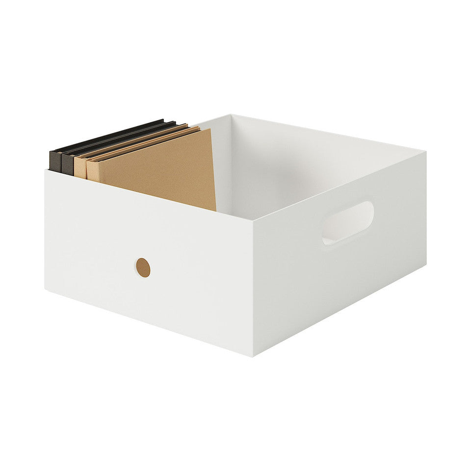 File box standard, half the height of 25 cm width type. Can be stacked up to 3 tiers high by attaching an optional lid.